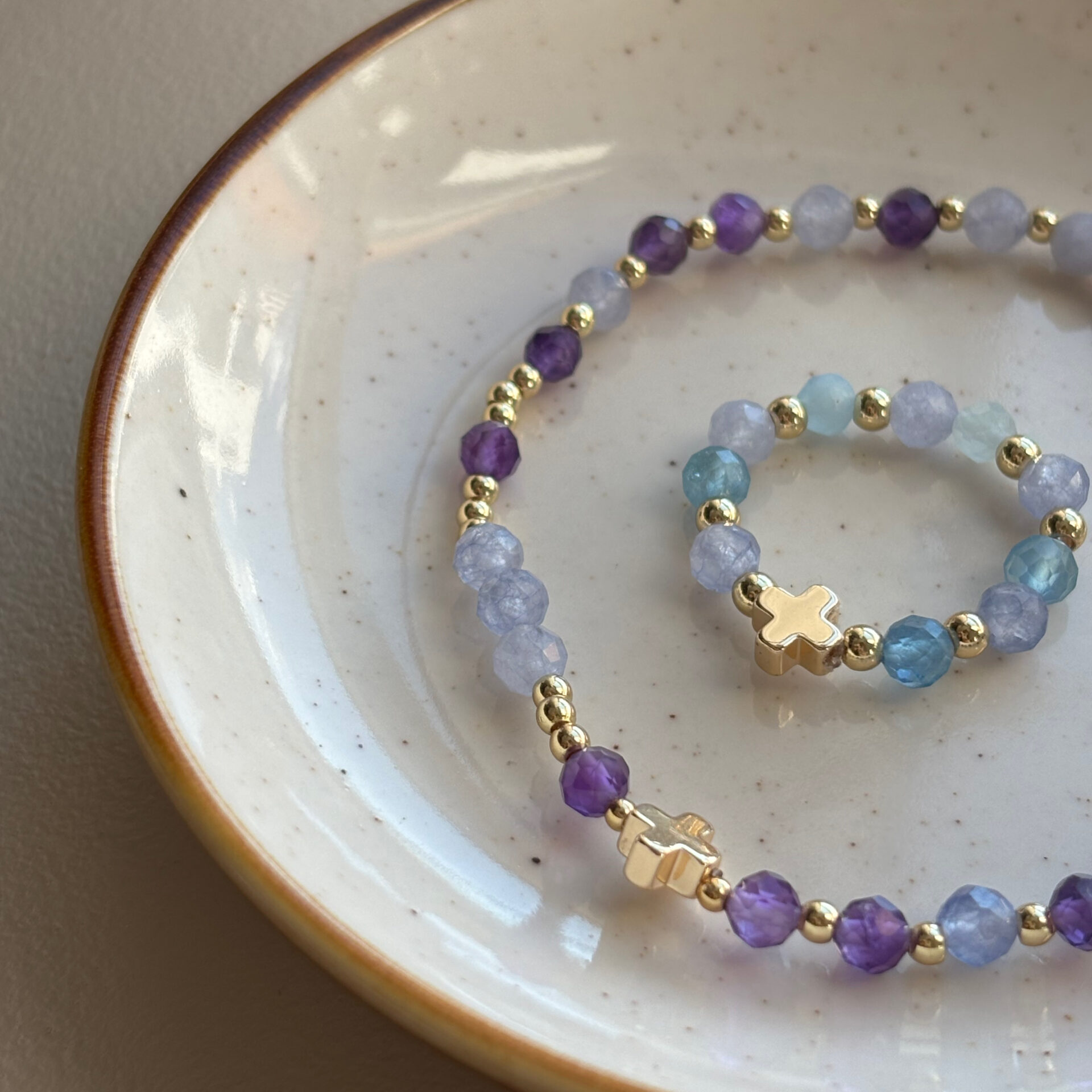 Różaniec w delikatnych kolorach fioletu i błękitu