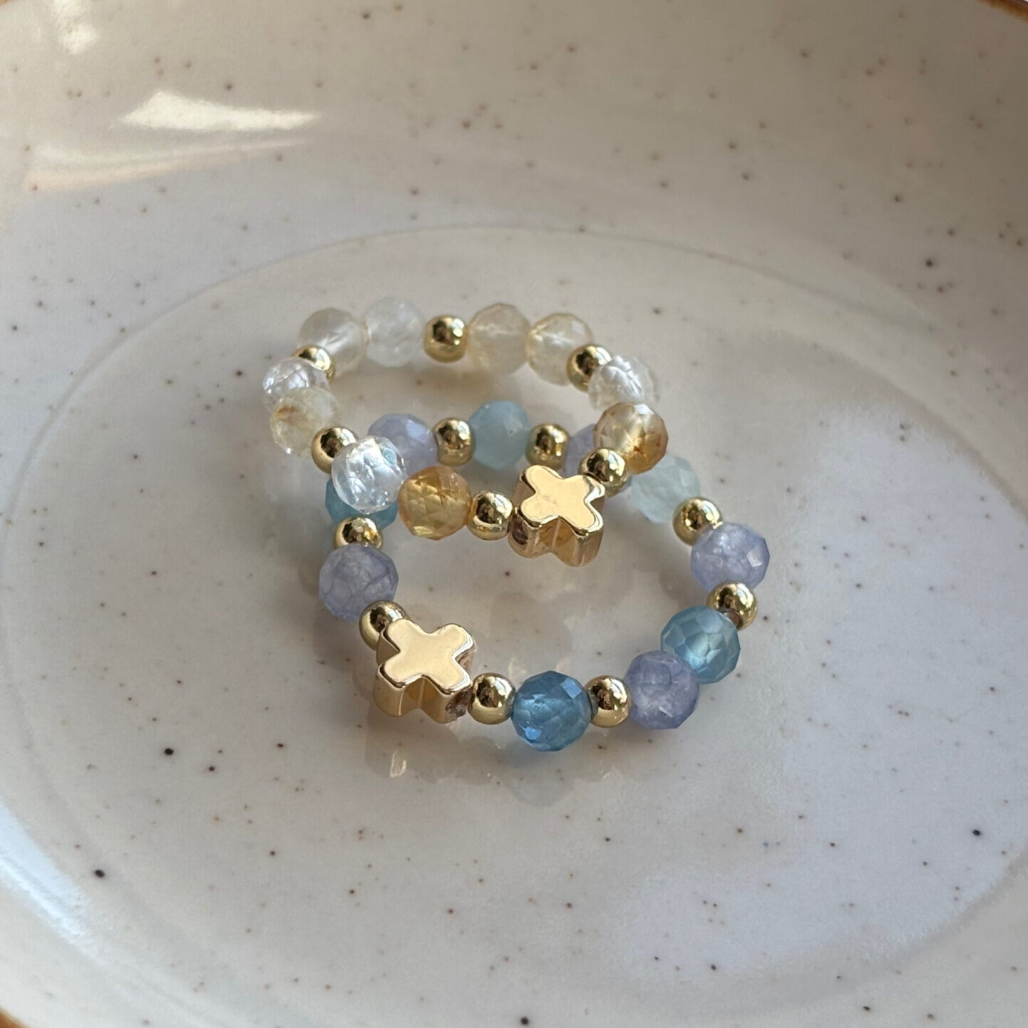 Każdy pierścionek nieco się rozciąga, ponieważ jest wykonany na gumce. Jednak dla wygody użytkowania wprowadzam trzy warianty, które odpowiadają następującym rozmiarom (mierzone na luźno, bez naciągania)