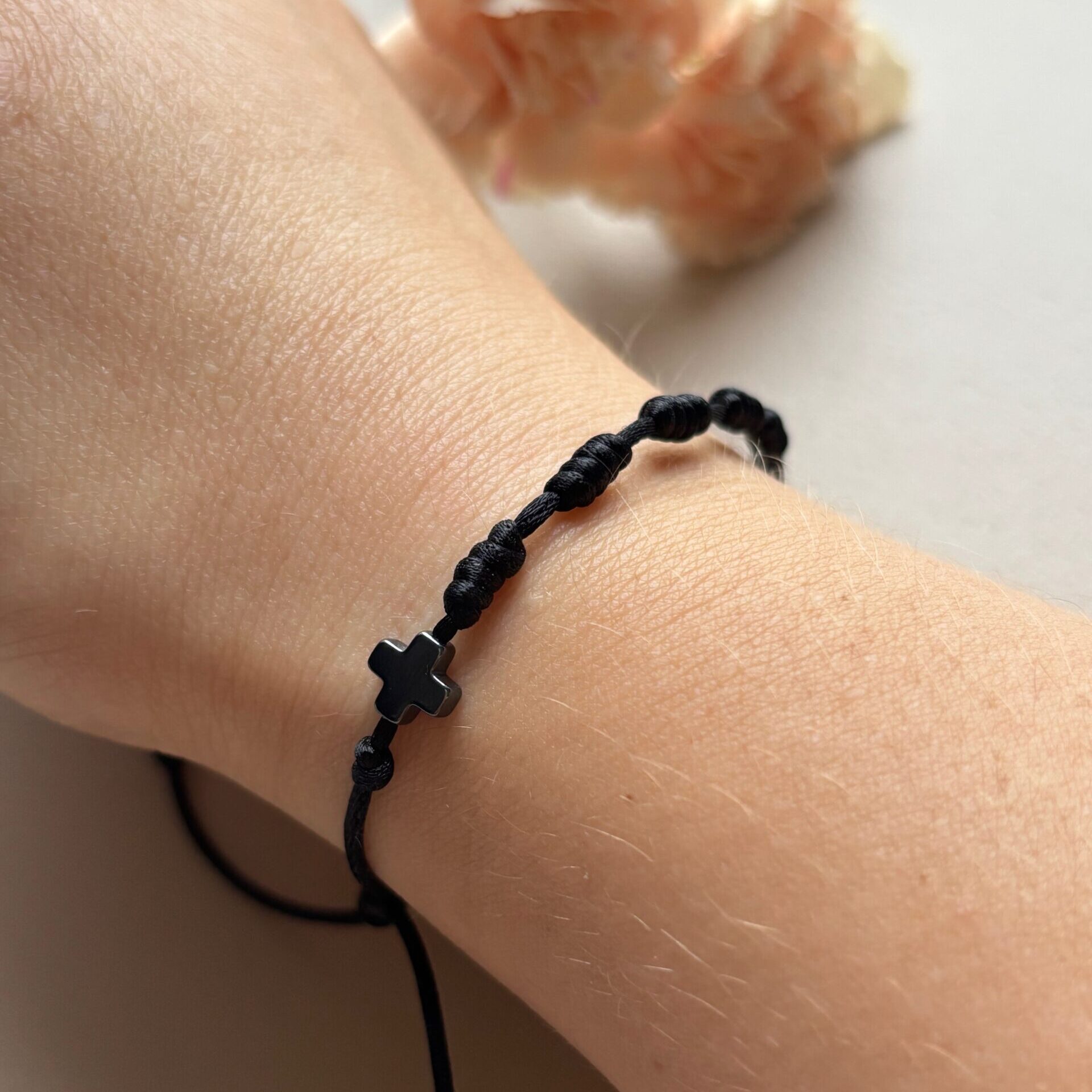 - krzyżyk czarny hematytowy 6 mm