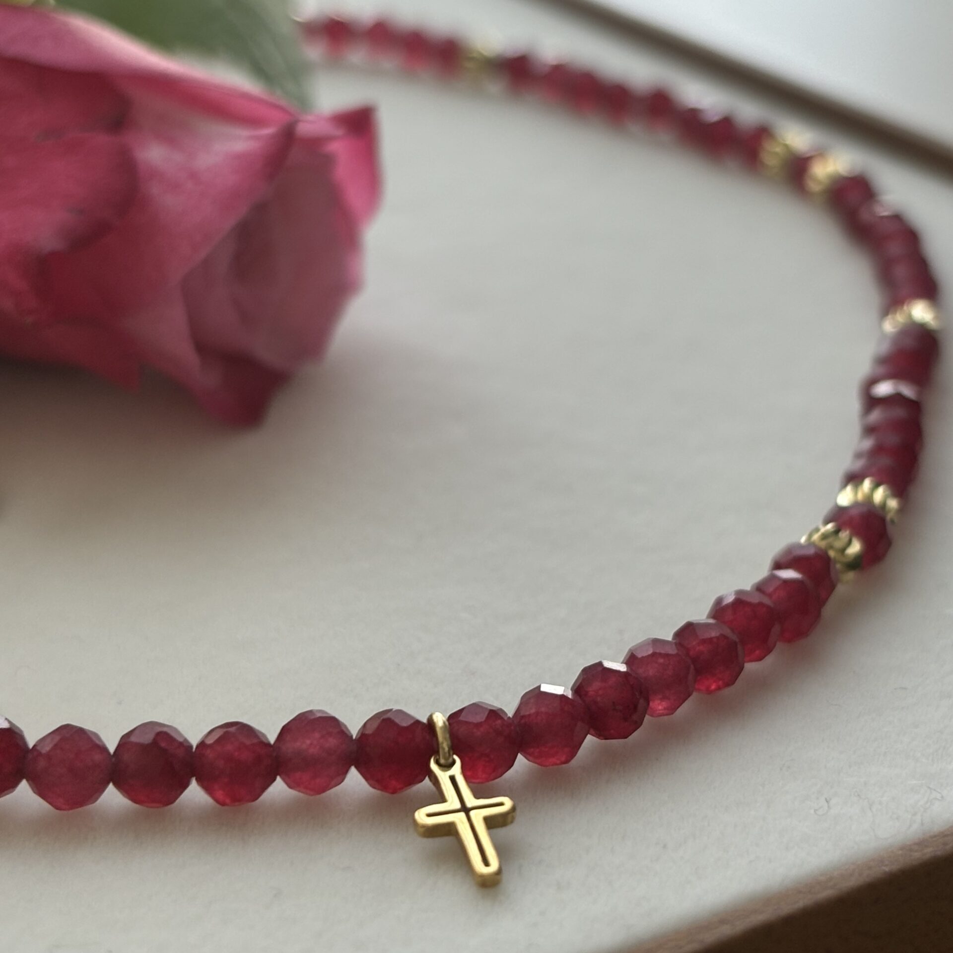 Piękny naszyjnik z rubinami na pewno podkreśli Twoją urodę. Da także sposobność do dawania świadectwa wiary.