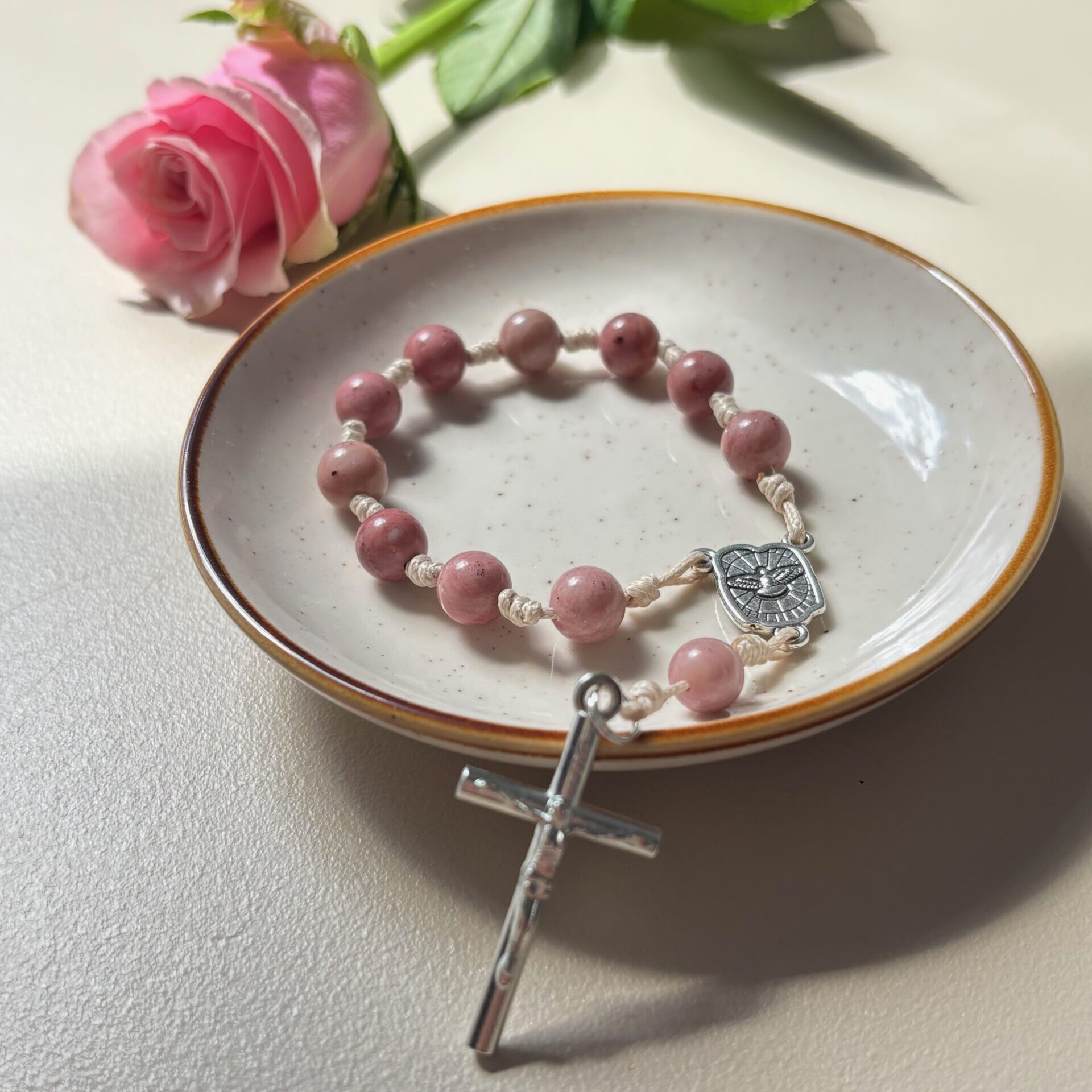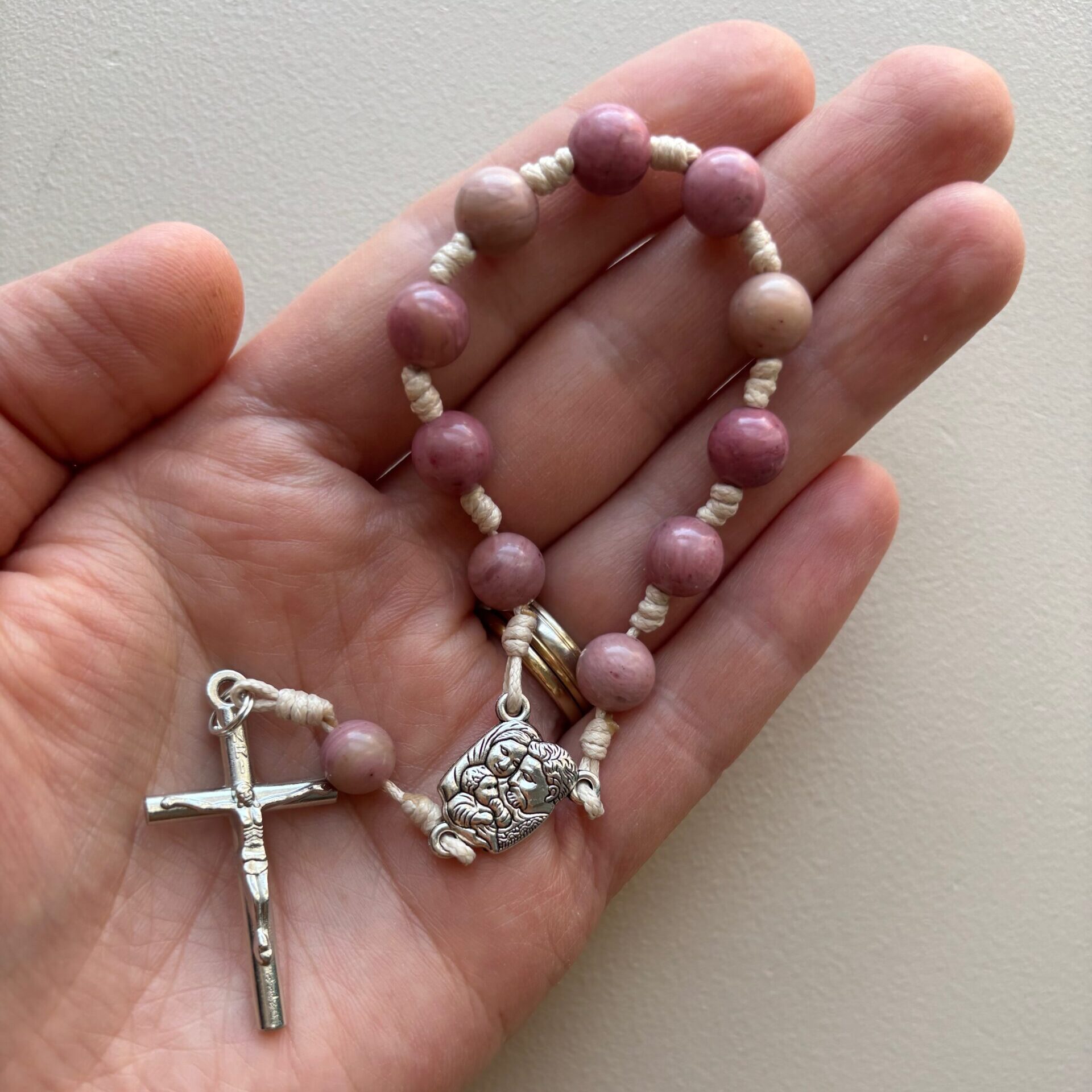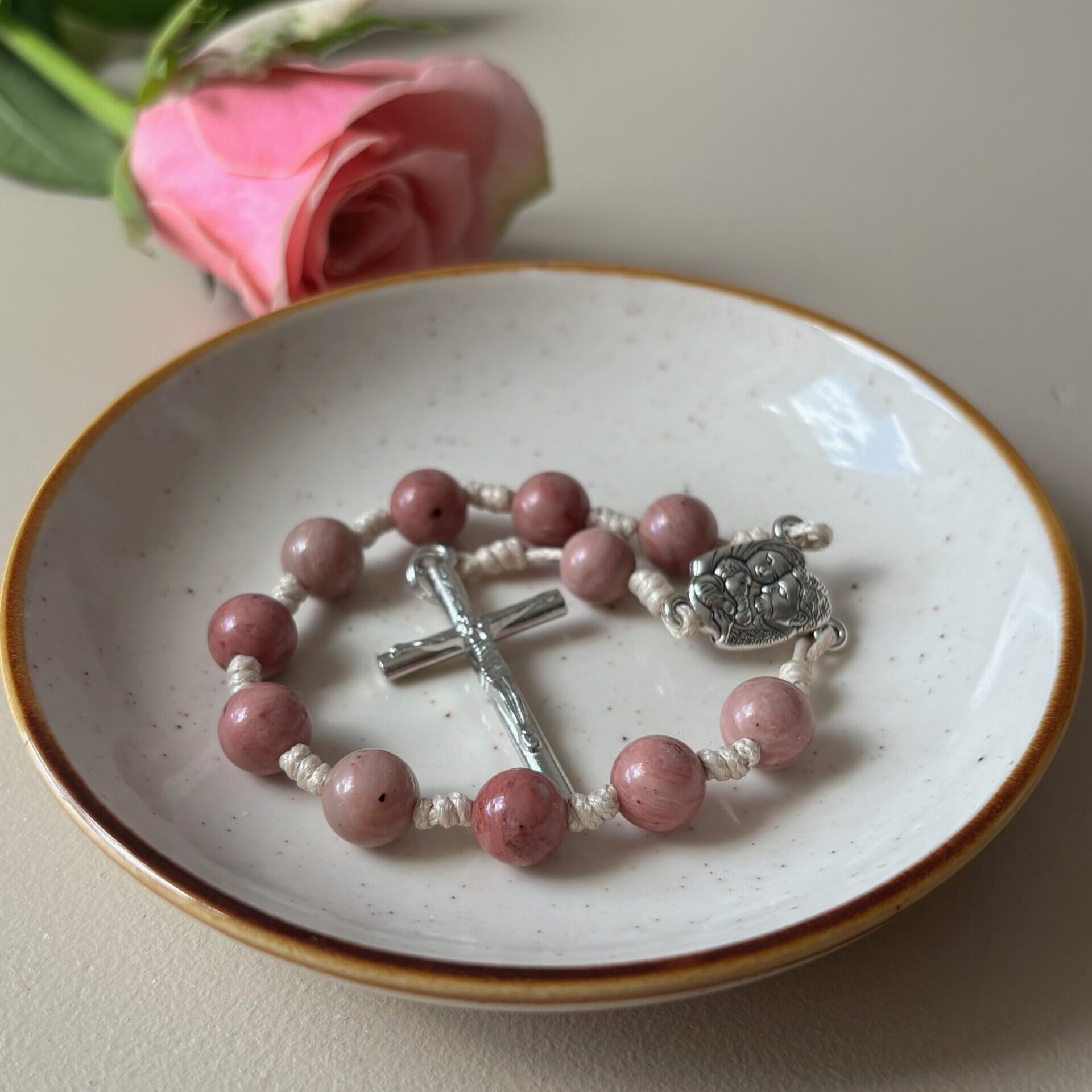 Różańce wykonuję ręcznie dbając o wszelkie detale. Każdy z nich jest jedyny i niepowtarzalny więc otrzymany produkt może różnić się od tego widocznego na zdjęciu np. z powodu nieco innej barwy czy deseni na koralikach. Jest to spowodowane tym, że różaniec jest wykonany z kamieni naturalnych.