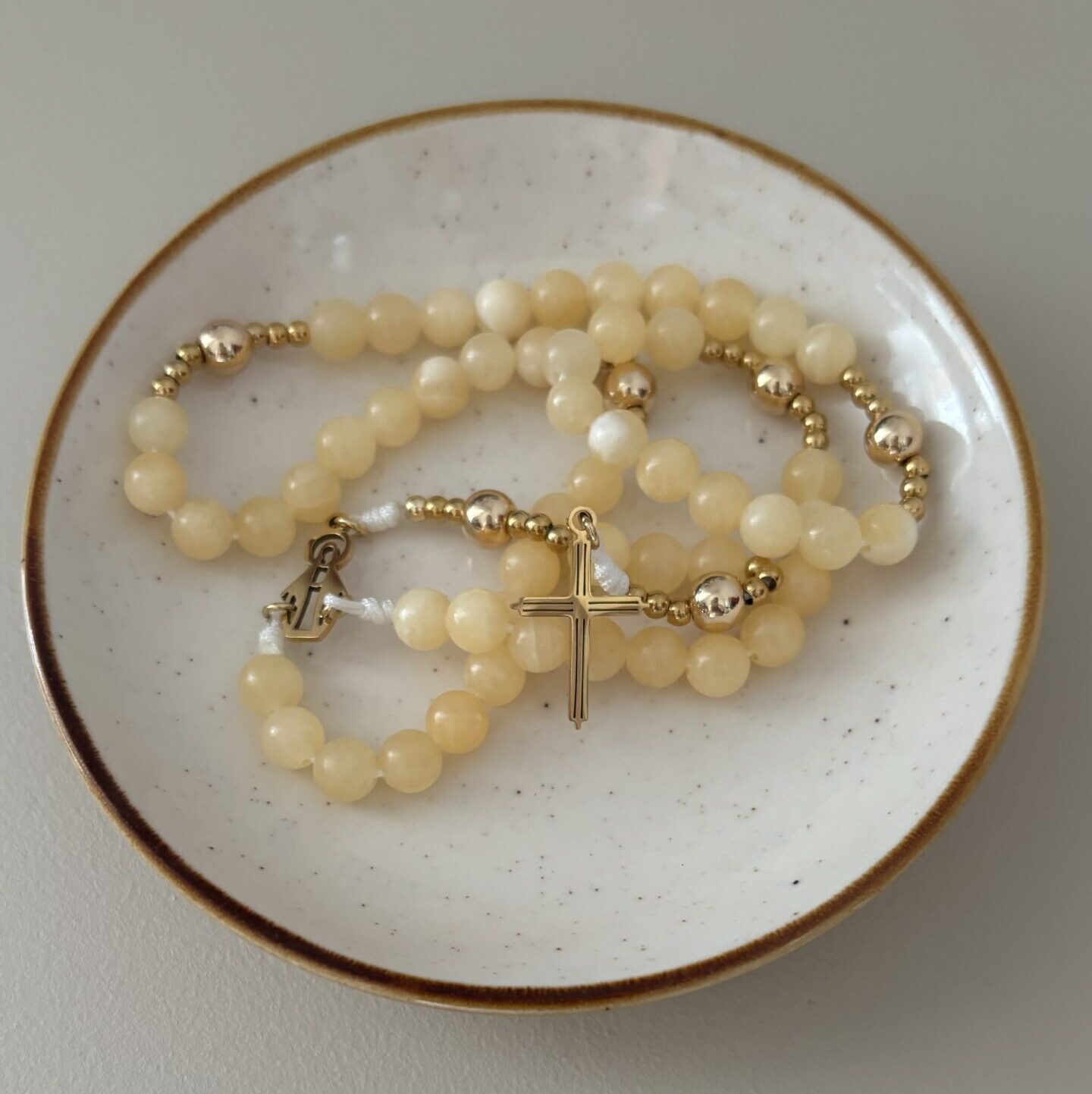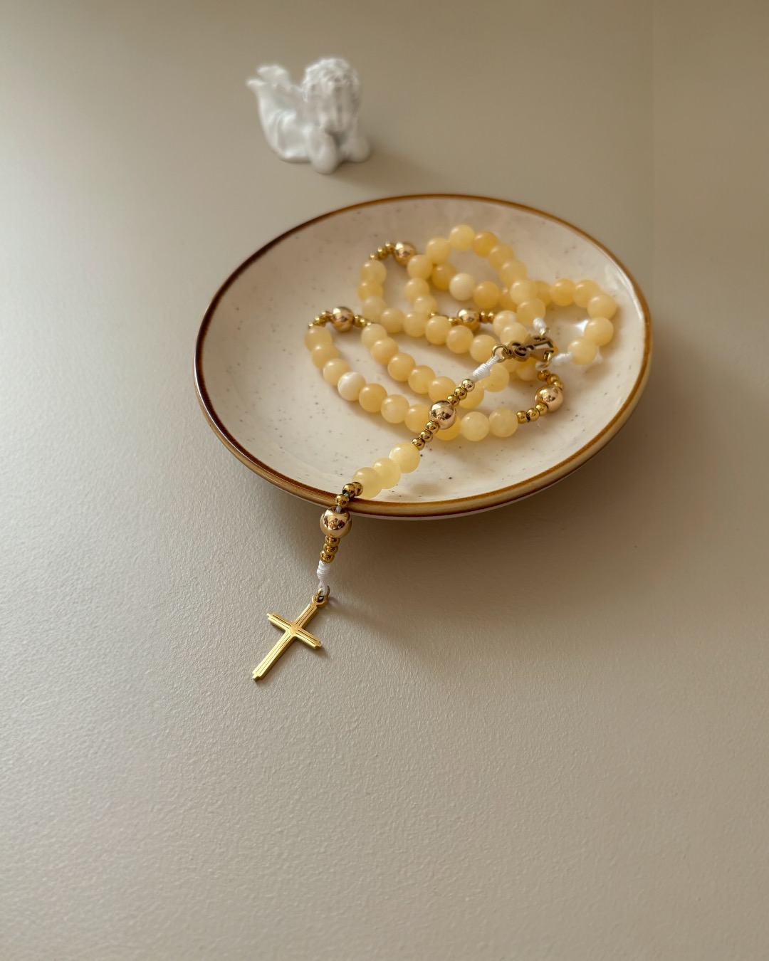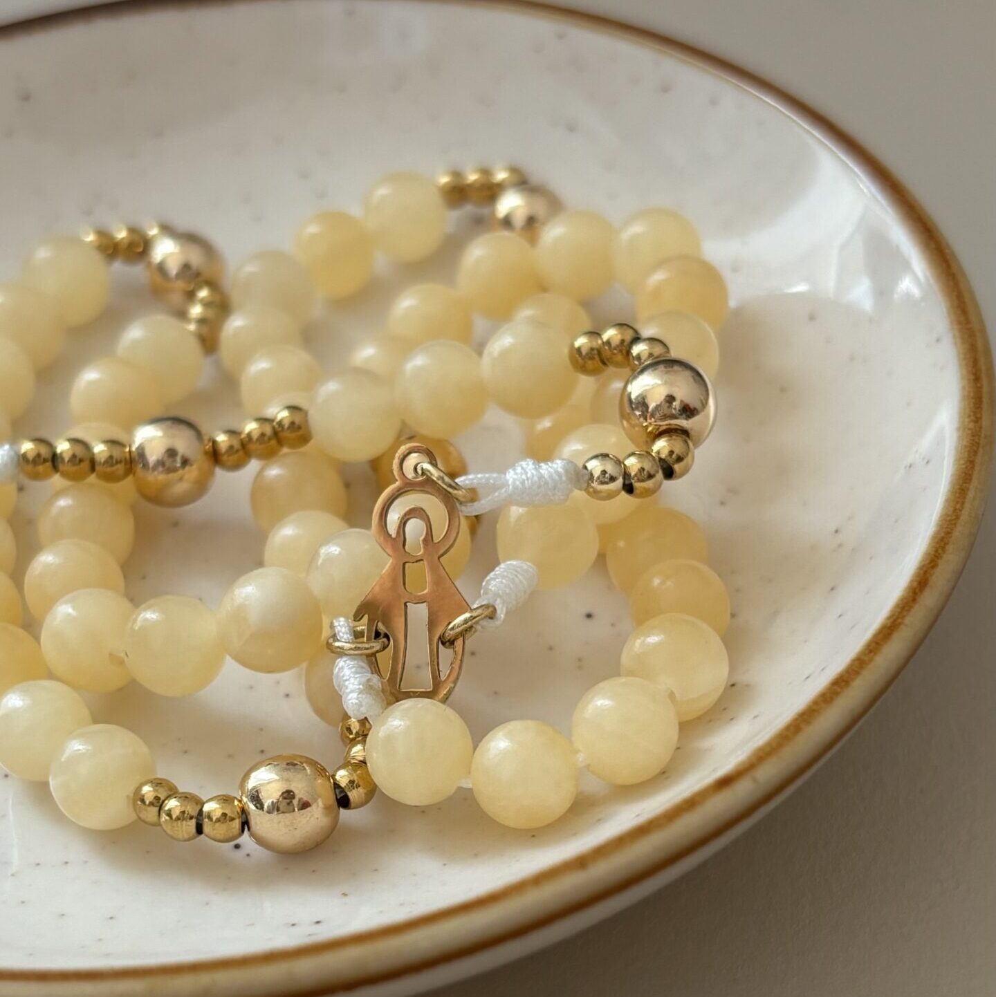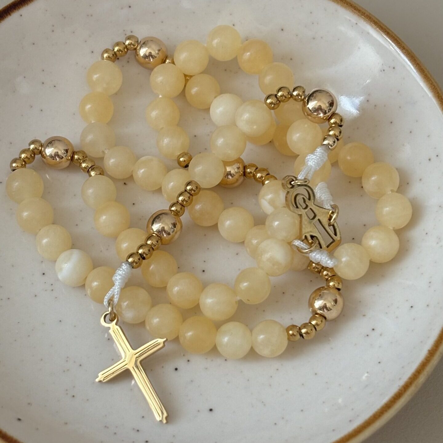 To różaniec delikatny. Gdy patrzę na koraliki z żółtego jaspisu myślę o kłosach zbóż, które Rut zbierała na polach Booza.