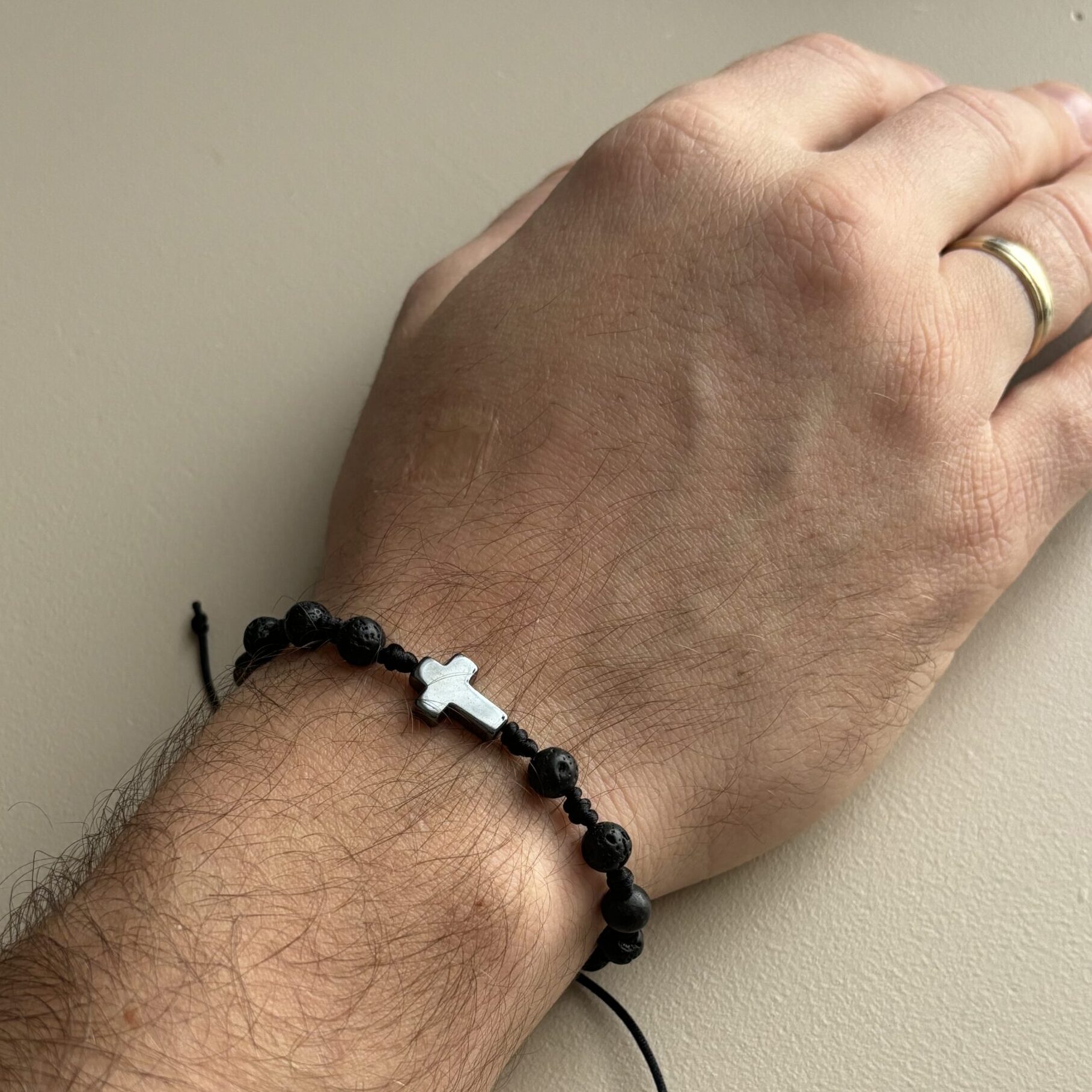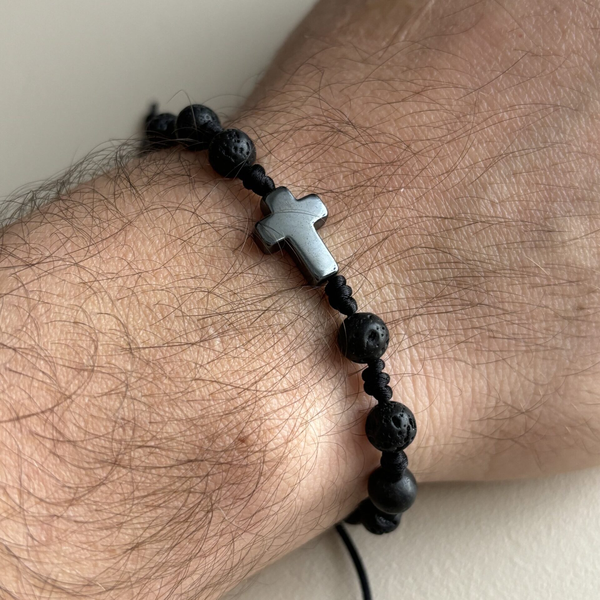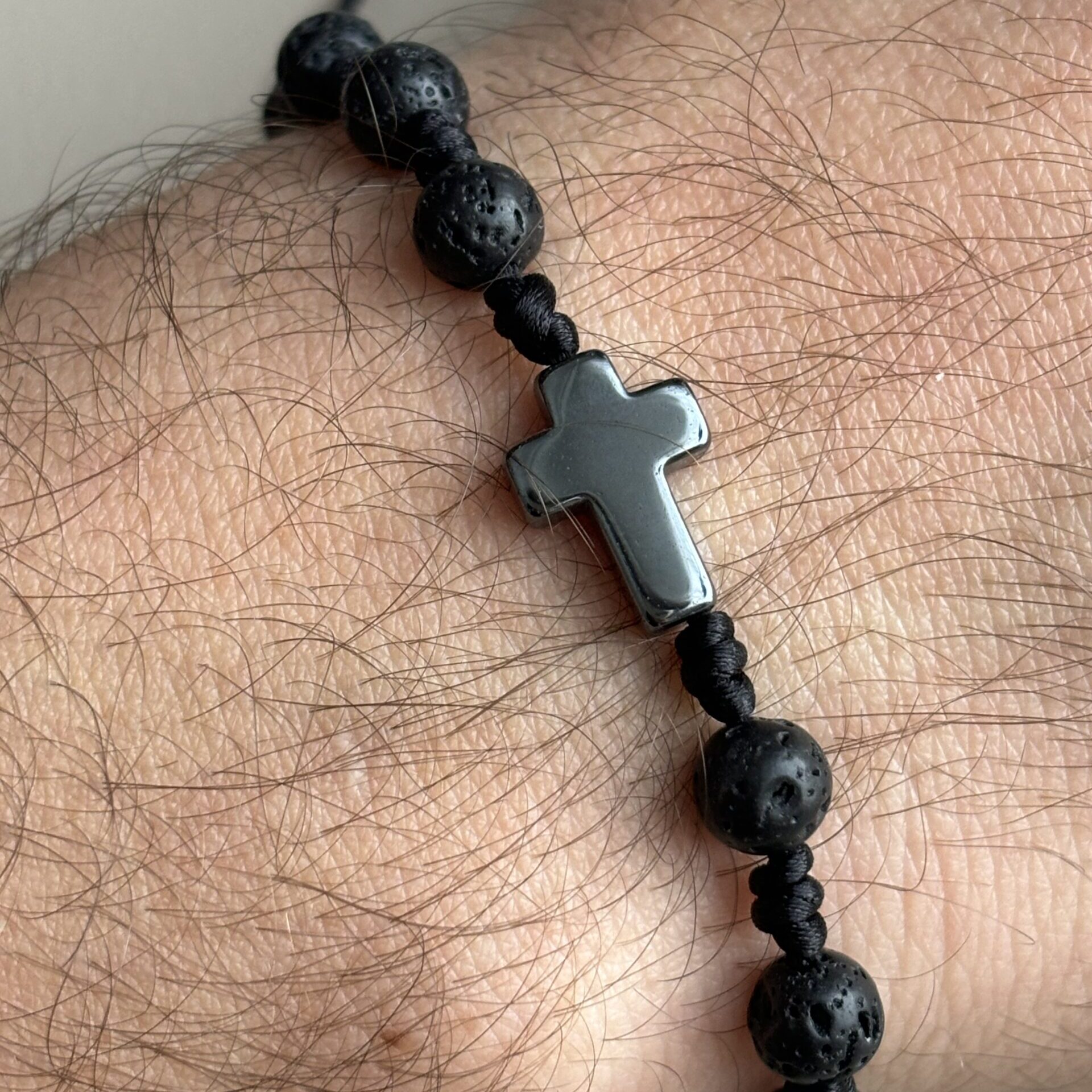 Różaniec dla Panów, którzy chcą połączyć noszenie bransoletki, która jest ozdobą z funkcją modlitewną.