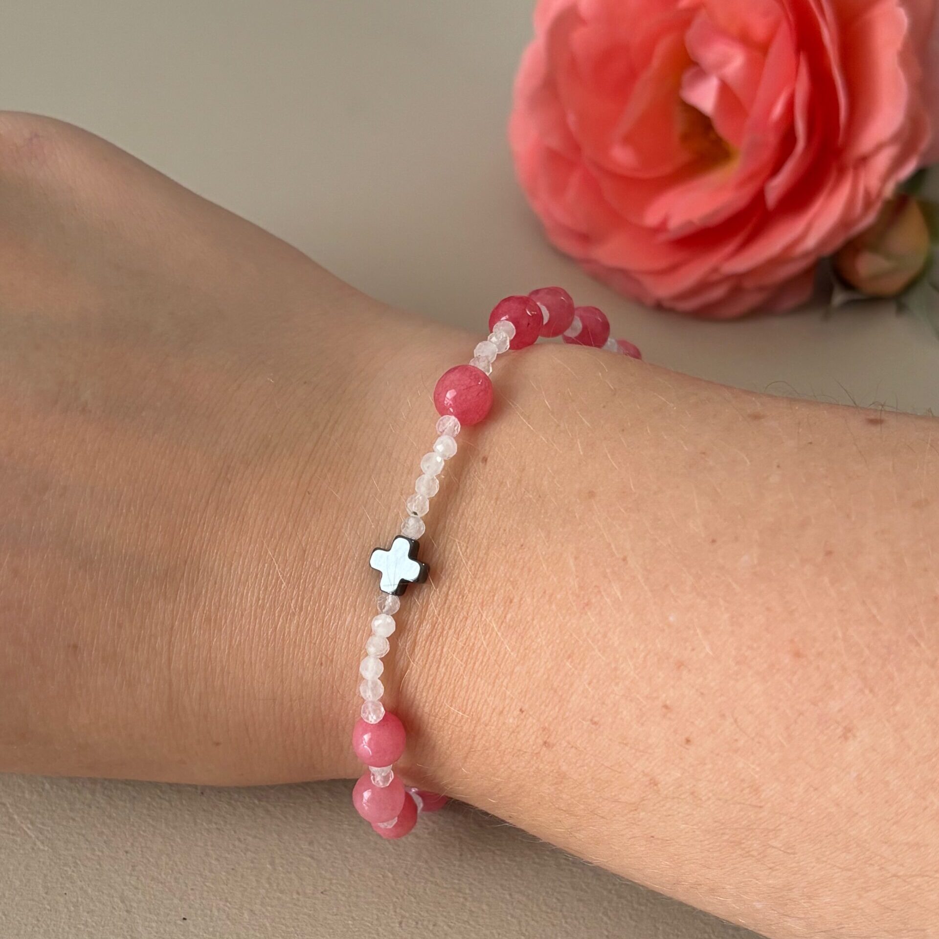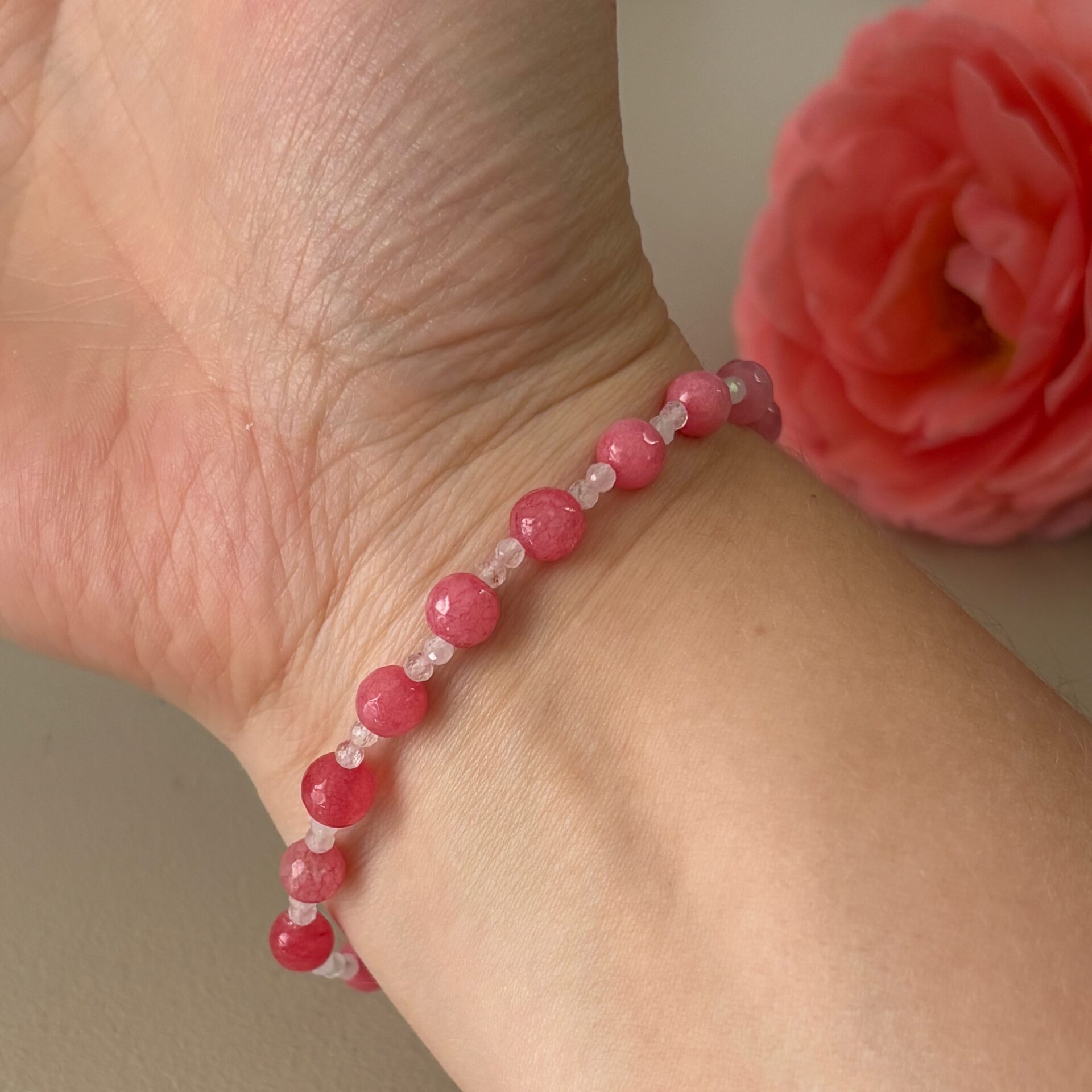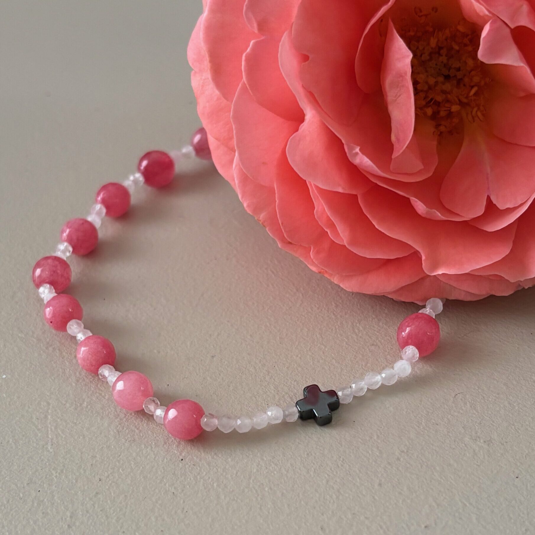 - koraliki główne – różowy chalcedon 6 mm