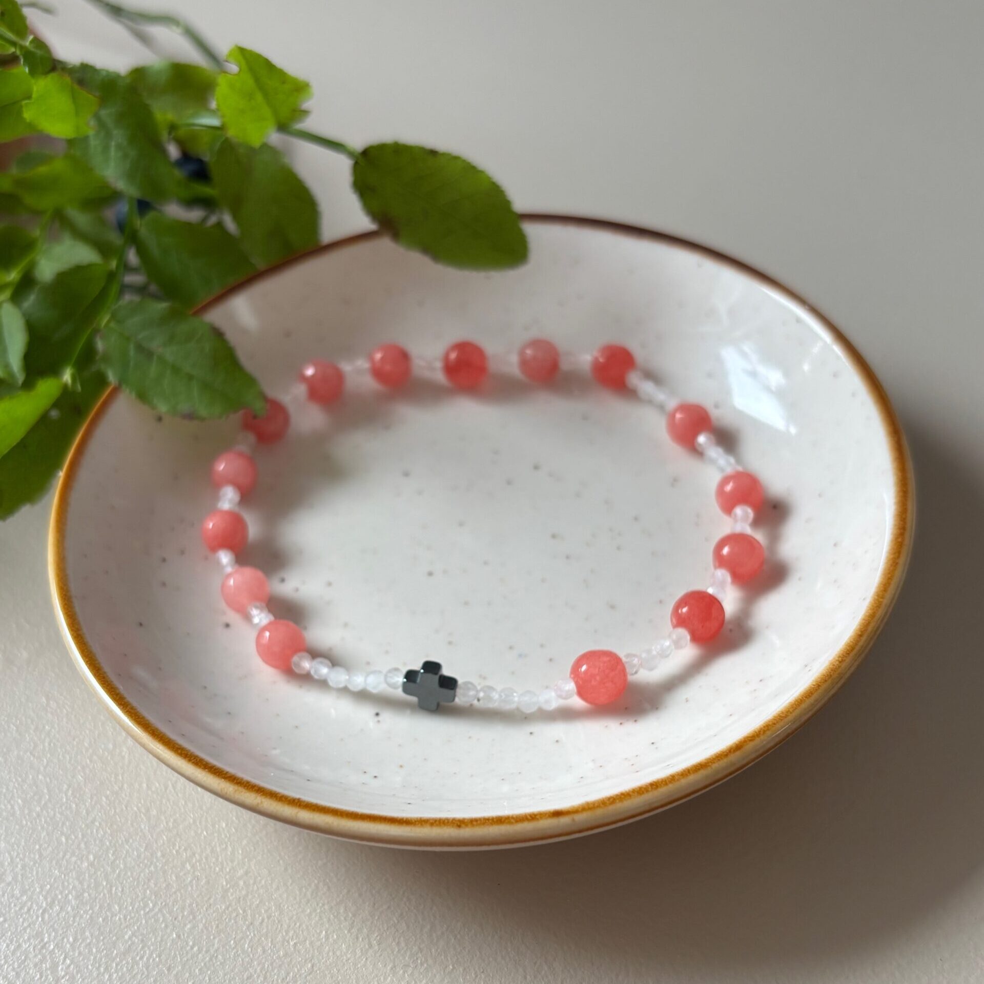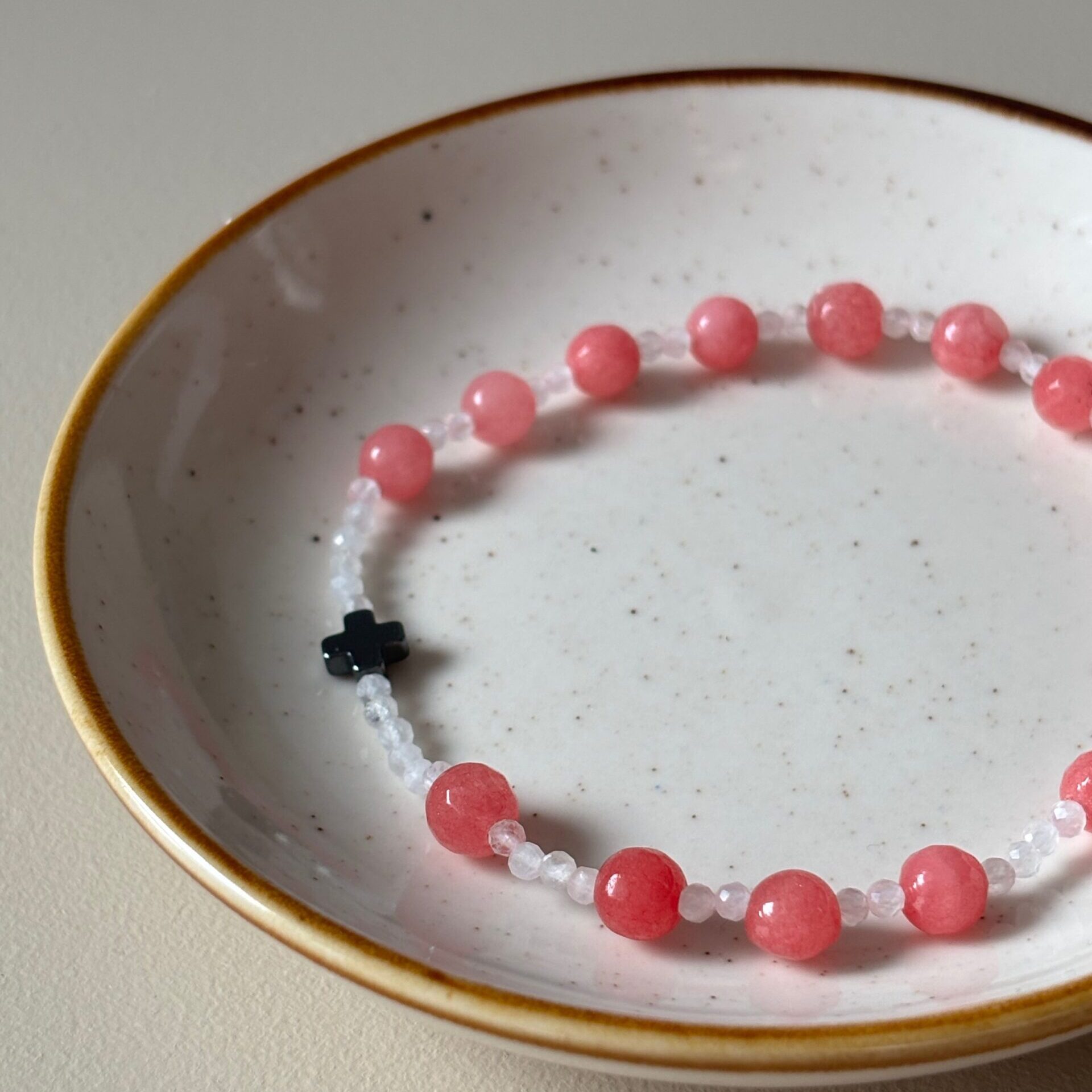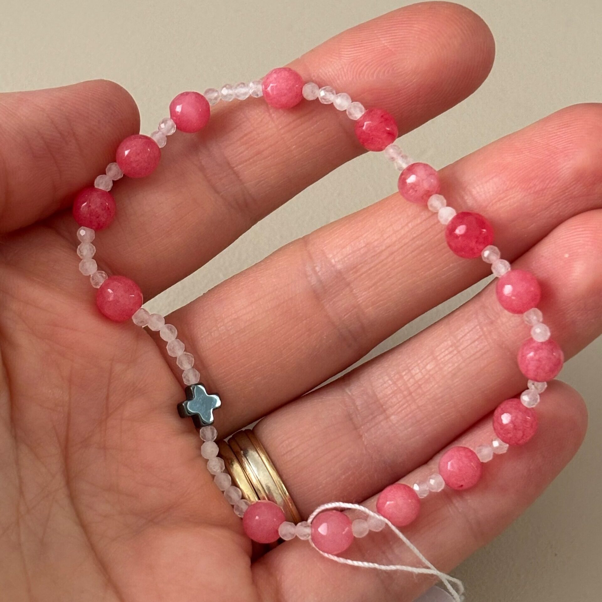 - koraliki główne – różowy chalcedon 6 mm